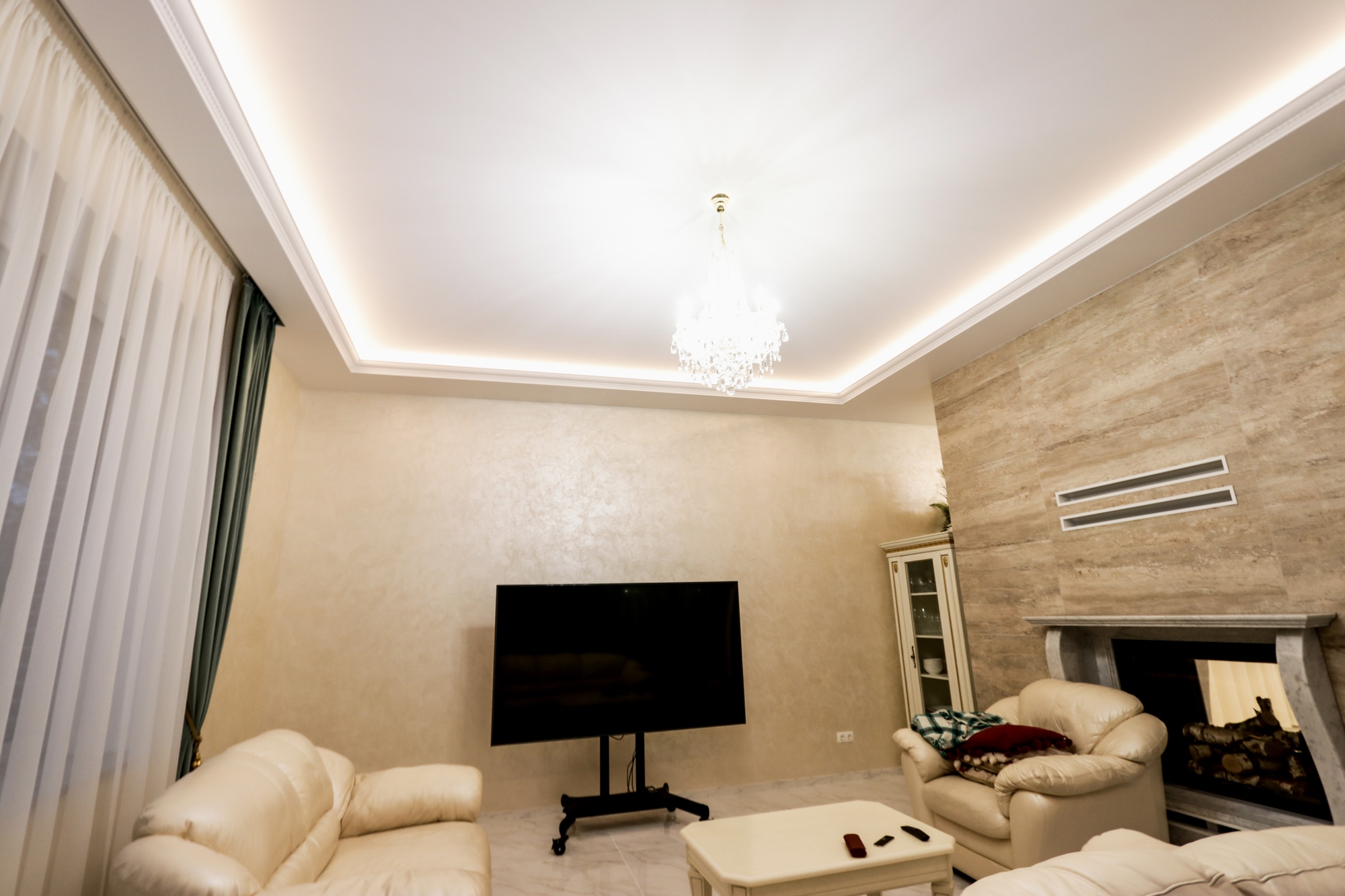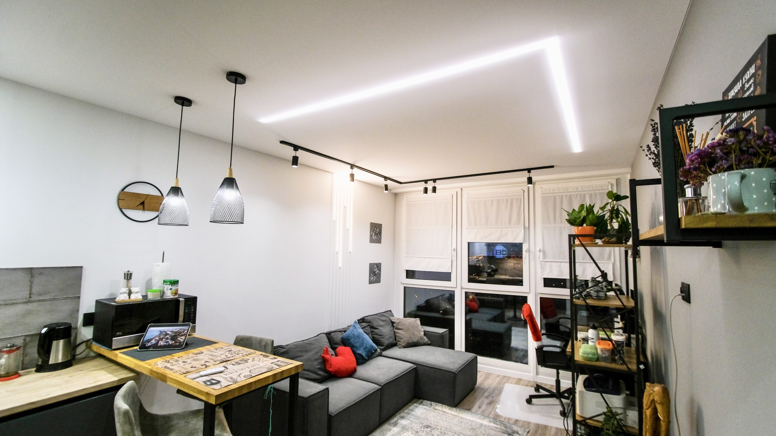 Линейные LED-профили рекомендуем для помещений с современным интерьером, кухням, гостиным. Для парящего мягкого света нужна контурная подсветка. Она создаст ощущение легкости и сделает помещение визуально просторнее. Универсальный вариант — комбинированный световой сценарий. Он позволяет менять освещение под запросы.